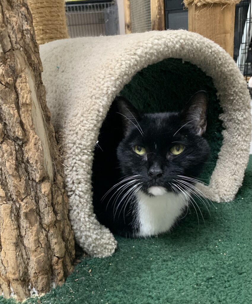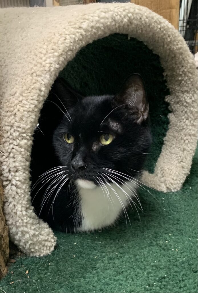 My name is Boots and I am a very friendly and well-adjusted 15-year-old male. I love being petted and loved. I get along with other cats. No one can believe that I’m 15 because I look so young and active! I’d do great as an only companion or in a home with other pets.
