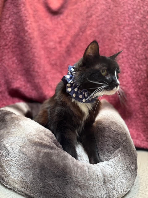 Hi, my name is Augusta, a 10 years young female cat who’s seen many lives. I was saved from euthanasia recently, and am looking forward to my retirement era (lots of naps, snacks, and meds). I’ve been passed around a lot, but despite my tumultuous history, I’m still a sweet cat who loves her treats. I’d like to prove to the world that we shouldn’t be tossed away or given up on. I have hyperthyroidism and take medications daily, but I take them like a champ. I am only on special kidney diet food! I would love a warm lap and a clean litter box to live out the rest of my golden years, if I could just be given the chance. I do great with dogs and have lived with other cats. I can’t wait to find my TRUE forever home.