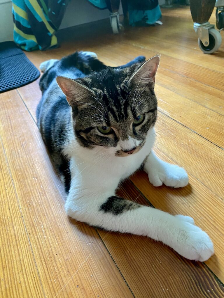 Hi , that’s me! I was found in a neighborhood in Medford and a kind couple started feeding me and got me to Kitty Connection.