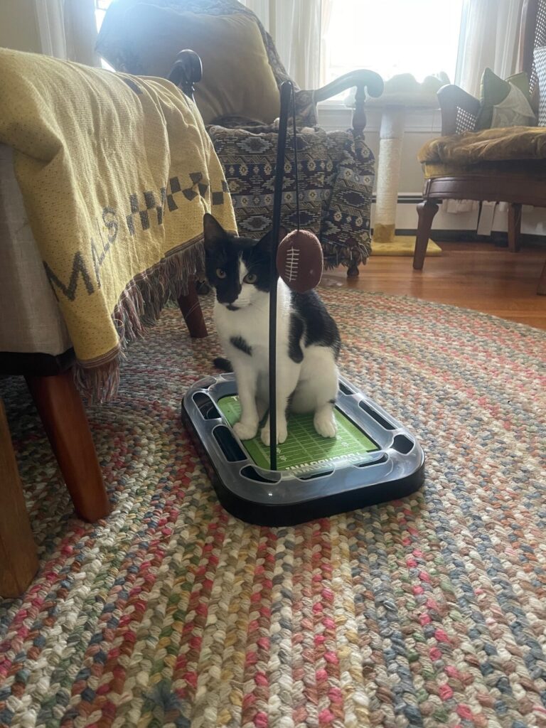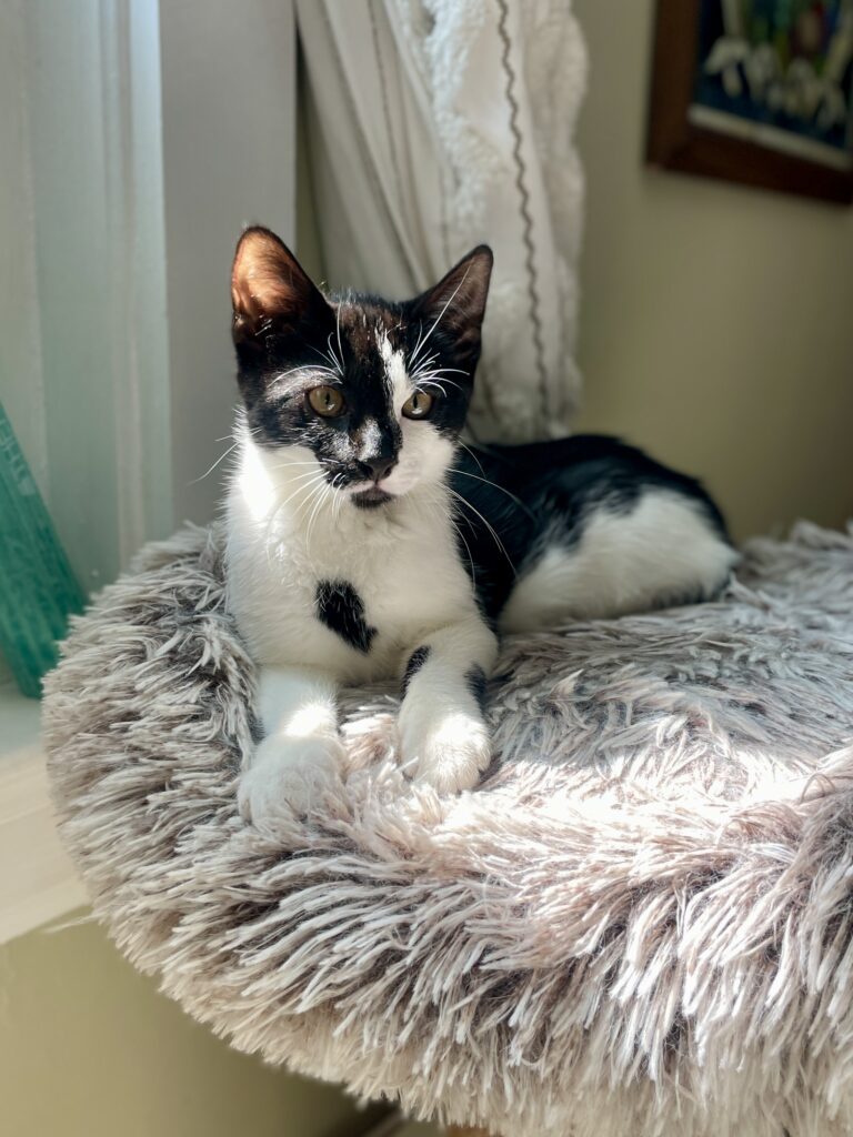 Hi! I’m Clara! I am a 5 month old female kitten! My life started a little tough being born outside! Then some nice people took me in and began to show me how nice humans can be! I can still be a little skittish at times, it’s hard for me to shake that initial instinct. However once I get to know you I relax and make myself right at home! I love following my humans room to room. Curling up with them on the couch or the bed. My favorite place to sleep is between my foster mom and dad in bed! I am a sucker for a churu! I LOVE LOVE LOVE to play! With my humans and with my cat friends. Having another playful cat in the home is a MUST for me. Loud and quick movements scare me still so I am best in a quiet home with no young kids. I can’t wait to find my forever home!