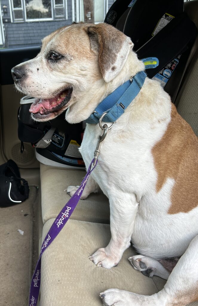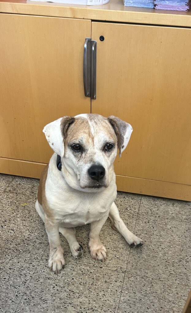 My name is Ella and I am a supper friendly and affectionate 10 year old Beagle/Boxer Mix. Sadly, my owner passed away. I was the love of his life and only family that I had. I was brought to the pound until a sister in Hawaii could release me for adoption. No one wanted me to go into a shelter, and fortunately Kitty Connection was able to take me to find me a forever home. I was his emotional support dog so I am absolutely in heaven being with somebody. I just love people and other animals. I’m a gentle soul. I’m great in the car and I’m a good girl out work with my Foster Mom. I’m a low key lady I enjoy a nice little walk in the morning and evening. If I need to tell you something, I’m persistent until you know what I’m trying to tell you – ready for my meal, need to go out, and need pets. I have a personality that will bring smiles and laughter to your life.