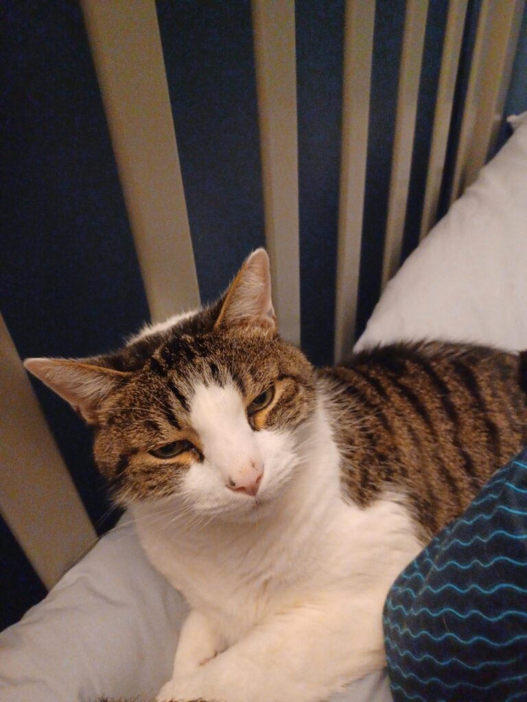 Hello, my name is Apollo! I am a neutered male, 8 years young. I have a beautiful coat which is white and tabby in color. My family could no longer care for me so they decided to give me to Kitty Connection as they knew they would find me the purrfect home. I am currently living with my foster family while waiting for my humans to come along. One of my favorite activities is basking in the sun while watching the birds fly by then drifting off for a little cat nap. Don’t me get wrong though as I do also love playing with my toys. I will love you to hold me as I nuzzle my head into your shoulder. I have the sweetest meow, purrfect purr, and gentle sandpaper kisses. Laying next to or on your lap while you pet me is my happy place. I will get along great with children as I am very gentle and sweet. I may warm up to other calm cats and/or dogs but I will need to do so at my own pace. I do have a level 2 heart murmur that the vet just found but no worries as Kitty Connection has an appointment set up to have it checked out. If you feel like you could be my humans and give me my furrever home please fill out an application!