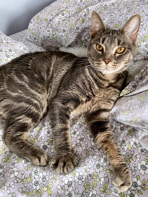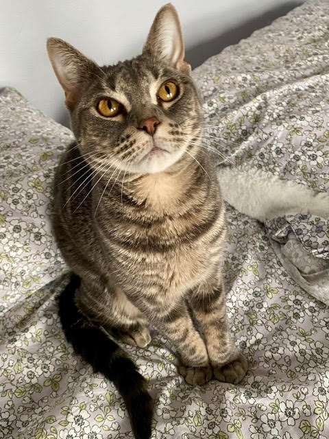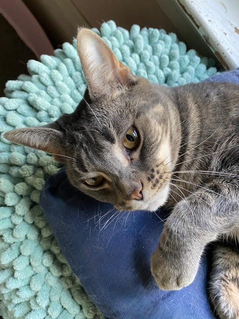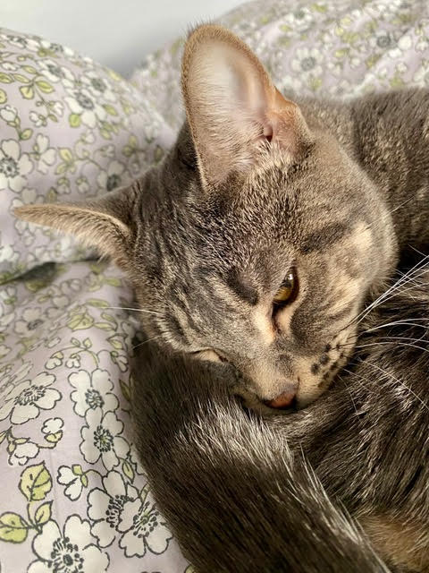 I spend my days looking out the window, finding a cozy place to take a nap and following my foster mom around the house. I do have 3 foster cat siblings that i’m checking out but so far i’m more interested in my mom.