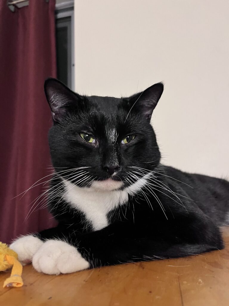 I’m playful, affectionate, smart, gentle, and full of love. I want a forever home where I can be your snuggle buddy, TV partner, window watcher, food connoisseur, and little shadow.