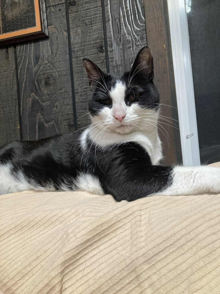 This is Oscar. He is 9 years young and such a love bug. He lost the home he lived in from kitten-hood because his human had to go to rehab All he wants to do is purr, get pets and curl up on his people. He can be an only cat, but could also have a cat friend under the right circumstances. He needs a home where his humans are home a lot (retiree, work from home, family where one of the members is home for most of the day, etc.). Are you looking for an adorable and loving companion? Oscar is your boy!!