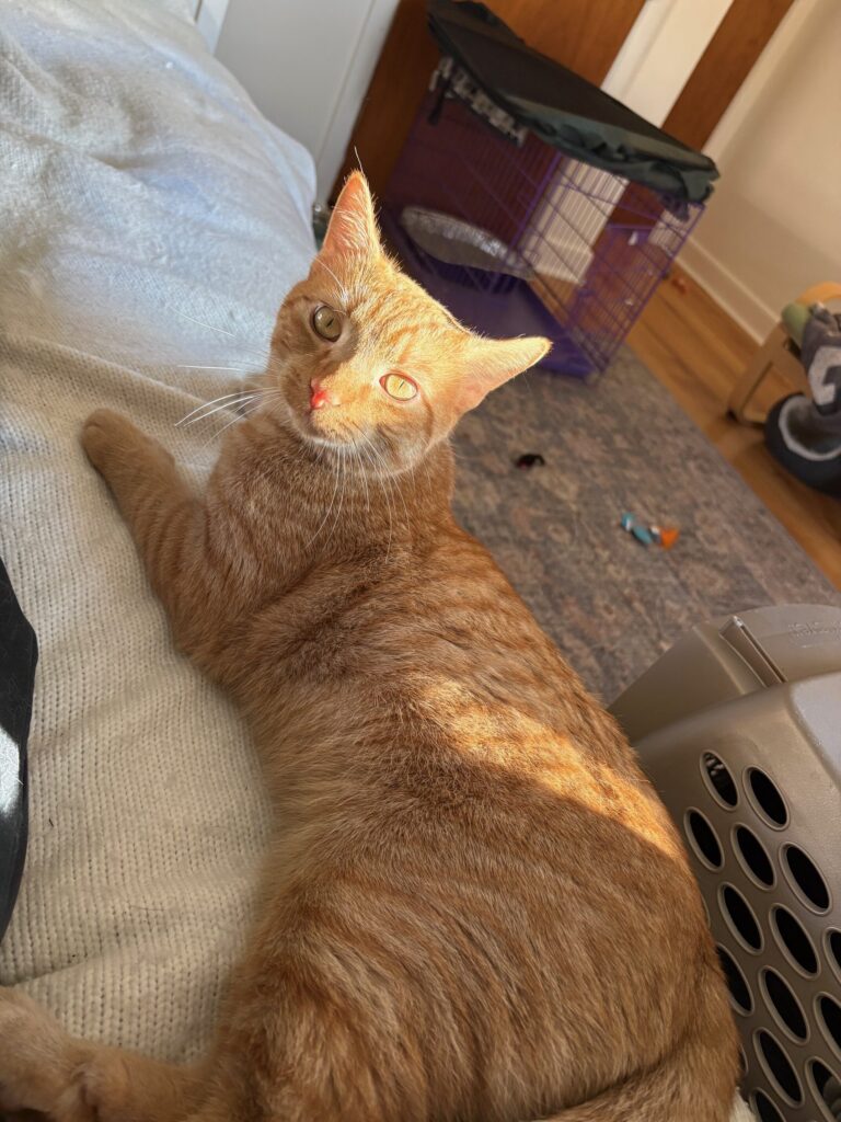 I’m very playful and love lots of attention. I love to play, chasing toys around the floor and through the air. I have loud purrs and love to cuddle up close next to you on the couch and even next to your computer while you work! I am good with other cats as long as they would like to play with me! I’m a fun, sweet, energetic boy who’s looking for a warm, kind, forever home!