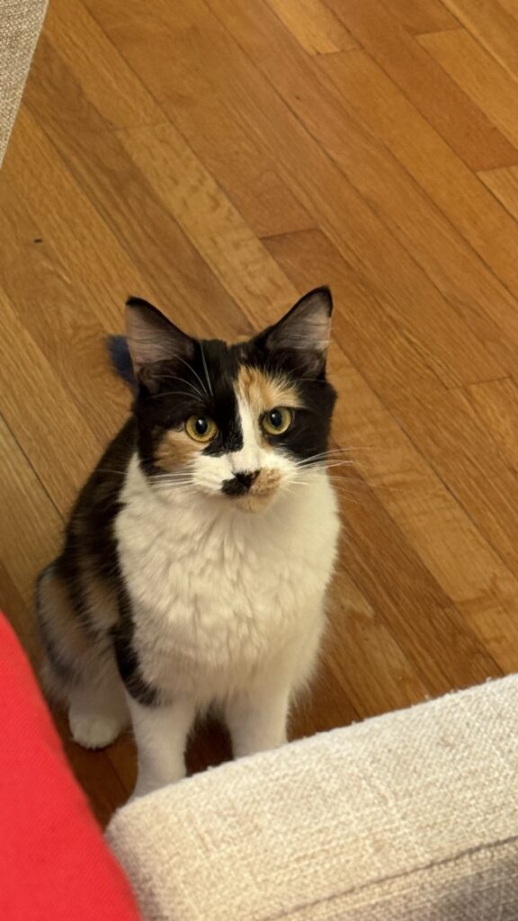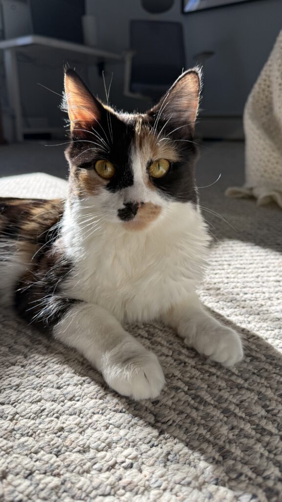 I love being close to my person, especially when things are calm and cozy. Sometimes I can get a little overwhelmed, especially if you’re walking around the house. I’m still a kitten and figuring out my feelings — but when things are quiet, I’m all in for cuddles and happy to soak up your affection.