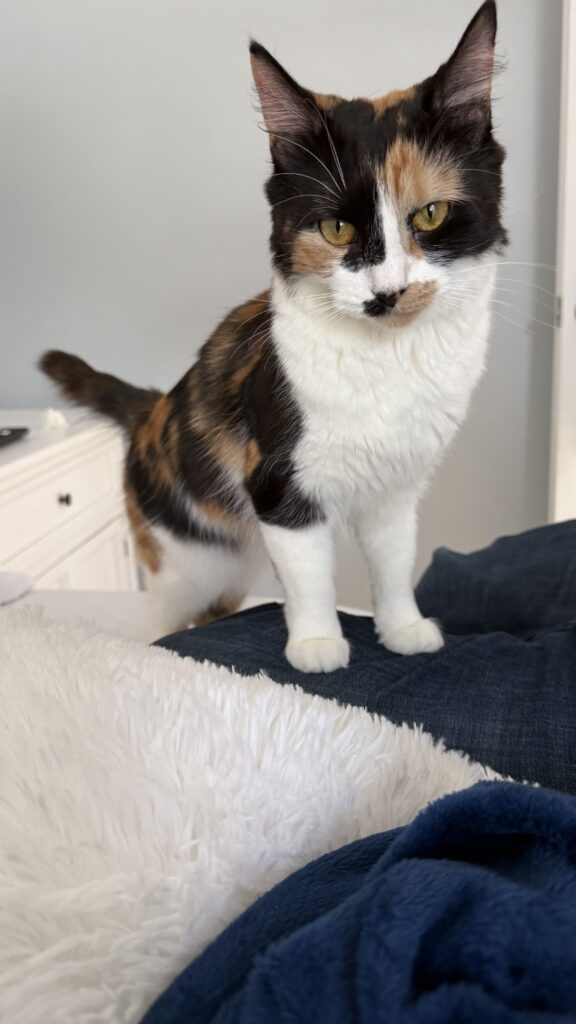 I’m a sweet, affectionate girl who loves attention. Head butts are kind of my signature move — if you’re sitting still, expect one (or ten). I also really enjoy gentle kisses on my head and rubbing my face against yours. Snuggling? Yes please. I’m very good at that.