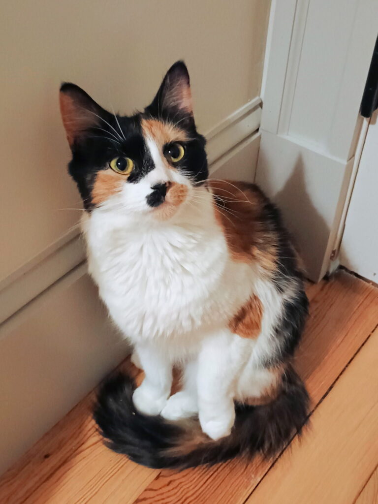 My name is Zoe, and I’m a 6-month-old beautiful female calico kitten looking for my forever home. I was pretty upset about losing my home, and I wasn’t getting along with the other cat, so I’m hoping my next home will be the perfect fit.