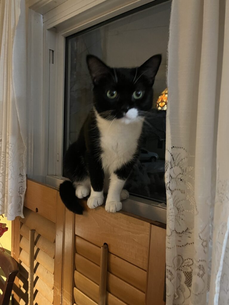 Hi I’m Splinter! I’m a three year old tuxedo female. I came to Kitty Connection after unfortunate circumstances.