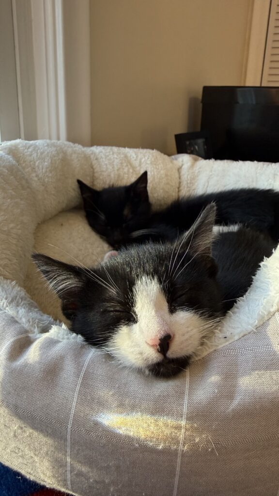 We’re kind of… obsessed with each other, honestly. Separating us would make us sad, so we’re looking for a home that has room in their heart for two perfect kittens.