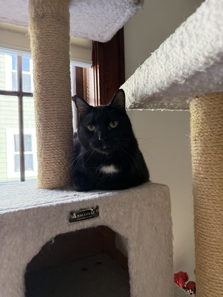 Hello friends, I am Asparagus, a 2 year old male DSH, mostly all black with a few white spots. I came into Kitty Connection with my buddy Wasabi (DSH orange tabby 8 year old male) when our person could no longer care for us. We’ve been well loved and are very friendly and curious little guys. Wasabi has some eye problems you may have heard about and Kitty Connection is working to get him some care. We do really like each other, but I’m healthy and ready to go and eager to make new friends if you’ve got a home for just me. I’d do best in a home with a lot of attention and a friend. We’ll just be chilling on the couch here at our foster home accepting pets until that right person comes along!