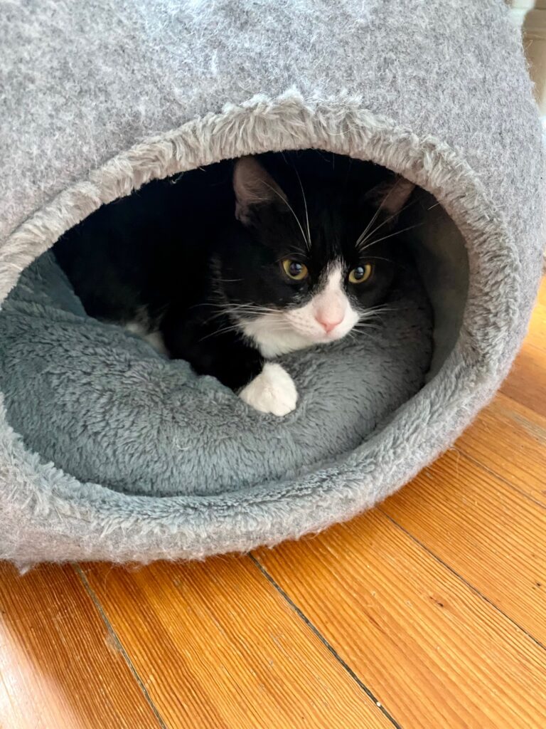 My name is Milo and I am 1 years old. My previous home wasn’t a good fit for me, so I am spending time with my brother and his family until I can find my forever home. I am very affectionate and cuddly and I get along great with other cats. I also love playing with toys! Once I get to know you, I will love sleeping by your side, reaching out for some love and affection. Did I mention that I will come when I am called and of course I will let you pick me up! During my downtime I love to relax on my cat tower and furniture if allowed. I hope to be the newest addition to your family!