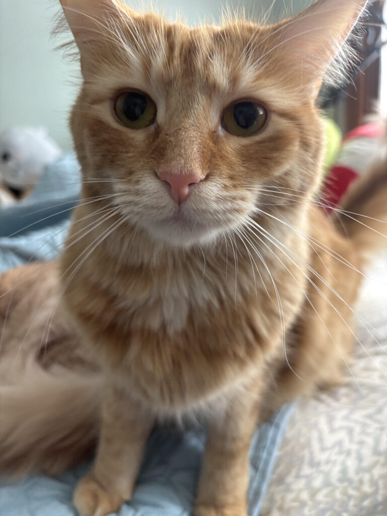 I’m Peanut and this is my sister, Butter. We are 1.5 years old and bonded–so we definitely need to be adopted together! Our owners decided one day they didn’t want us any more. We aren’t sure why because we are friendly lovebugs. I love to be held and carried around. Butter takes a bit longer to get comfortable, but she is a good sister and a special kitty. We would prefer a quieter home without any other pets.