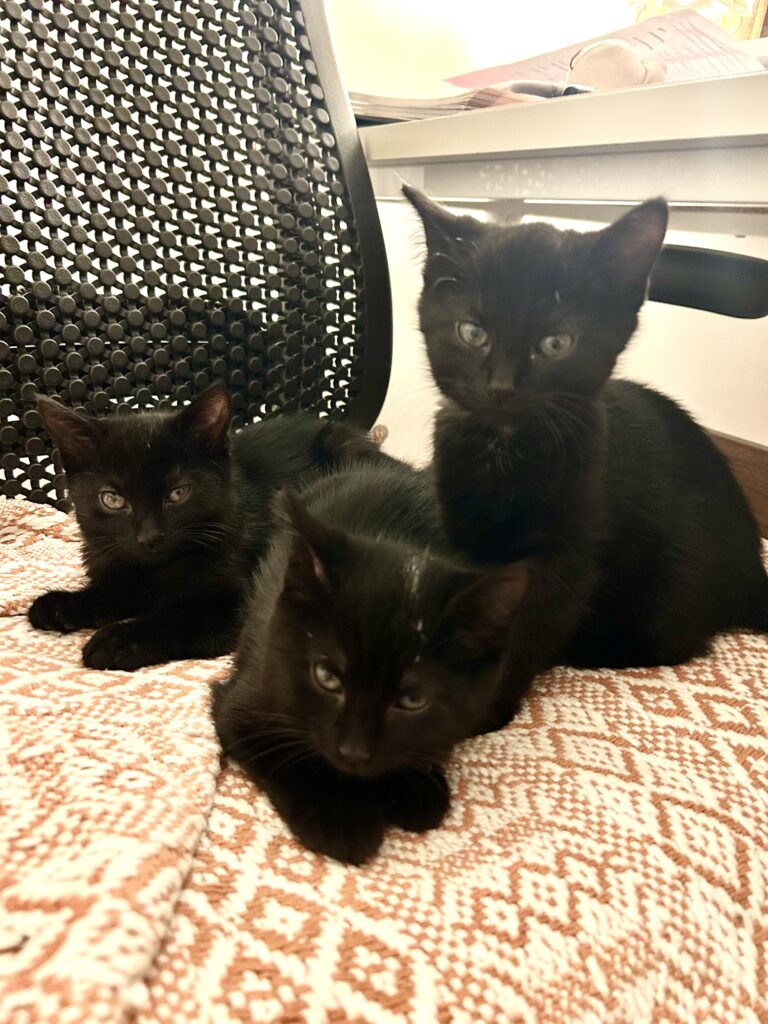 Our foster mom tells us that if two of us seemed more bonded, we could be separated, but that just isn’t the case with us. We all love each other so much. We would be best in a home with a family who is okay with 3 energetic, young kittens & plenty of space for us to run around and play. Could you be our forever family? The only thing better than 1 kitten….. is 3 kittens!