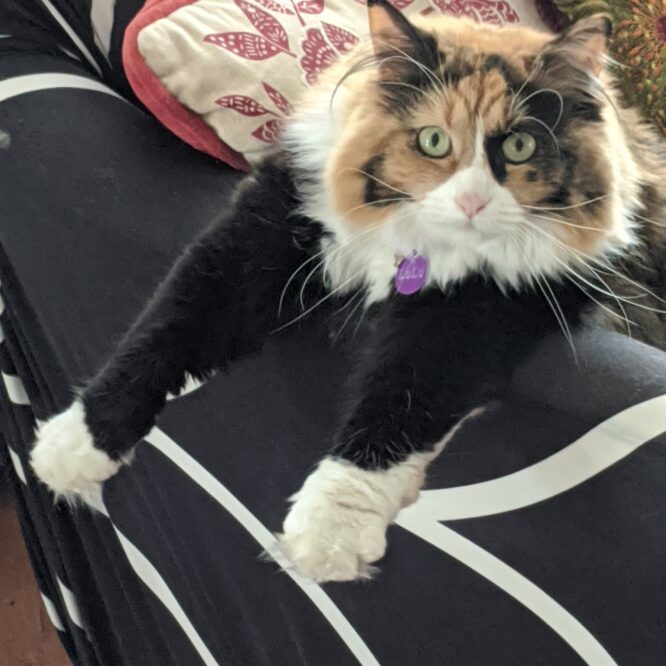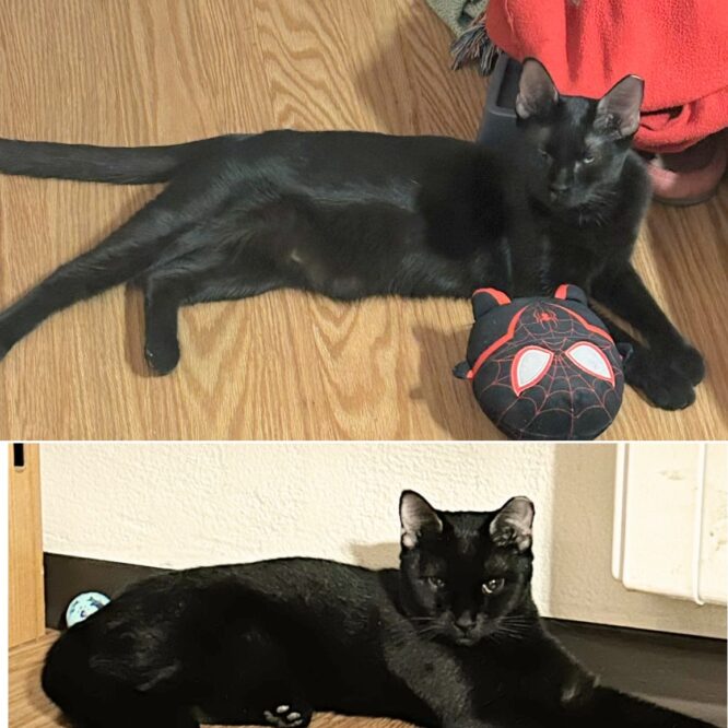 I’m Peanut and this is my sister, Butter. We are 1.5 years old and bonded–so we definitely need to be adopted together! Our owners decided one day they didn’t want us any more. We aren’t sure why because we are friendly lovebugs. I love to be held and carried around. Butter takes a bit longer to get comfortable, but she is a good sister and a special kitty. We would prefer a