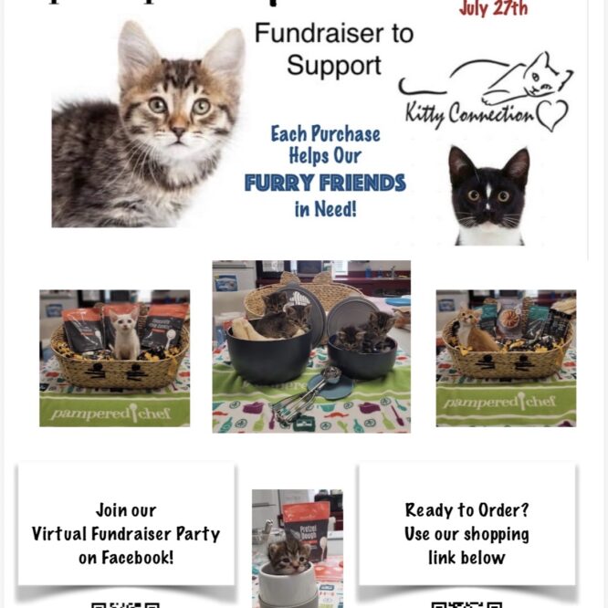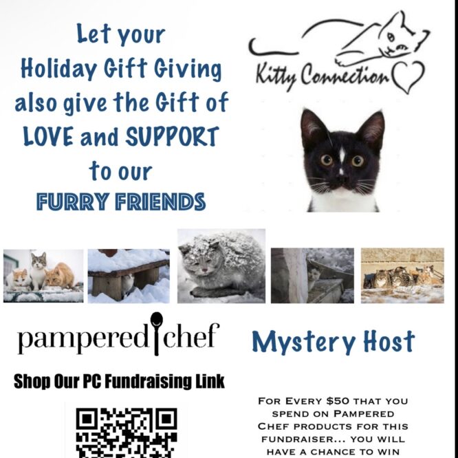 Love Pampered Chef? Now you can shop your favorite kitchen tools and holiday gifts while supporting Kitty Connection’s cat rescue work in Greater Boston. Order last-minute gifts and have them delivered right to your doorstep or sent as a surprise to someone you love. Every $50 you spend through our fundraiser earns you a chance to win host rewards toward free and discounted Pampered Chef products. Order by December